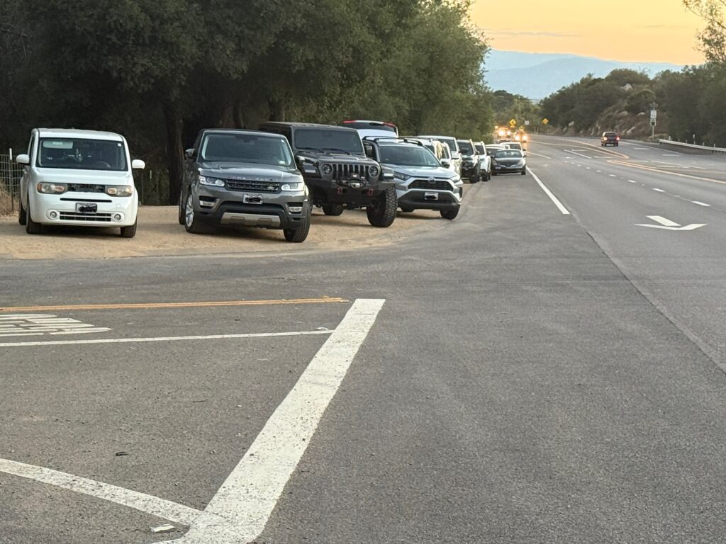 At times in the past, when people couldn’t park along 67 in front of Mt Woodson due to road paving work, people found other places to park – perhaps not officially allowable places, perhaps somewhat annoying to nearby residents, perhaps a bit scary (certainly less safe than parking along 67), and definitely inconvenient, but as they say, “where there is a will, there is a way”.